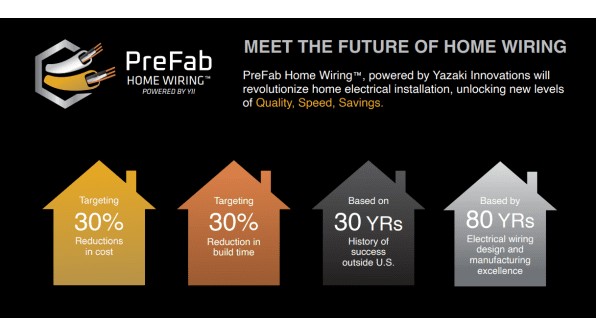 PreFab Home Wiring™ Solution is part of Yazaki innovations. Yazaki is the world’s largest automotive wire harness manufacturer with over 80 years’ experience and $16B in sales. We have been building home wiring harnesses in Japan for over 30 years. That heritage and experience guarantee our commitment to delivering a quality product that increases efficiency on the jobsite, saving you time and money.